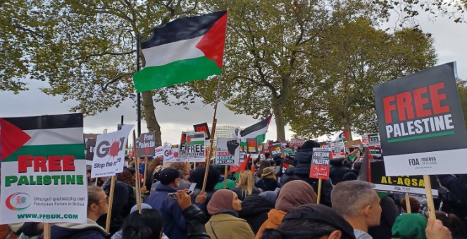 Trade union leaders including RMT’s Mick Lynch, Matt Wrack from the Fire Brigades Union (FBU) and a UNISON representative were among speakers at the mass Palestine solidarity demonstration in London last weekend, which saw thousands of people march through the City to call for a ceasefire.